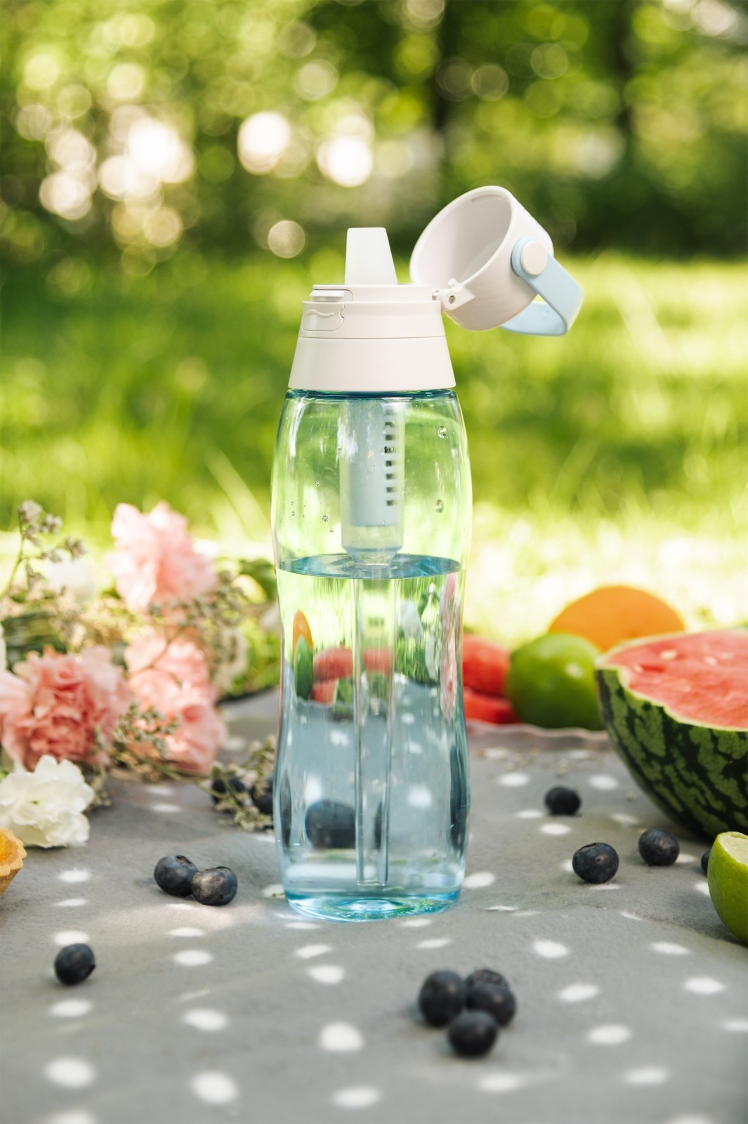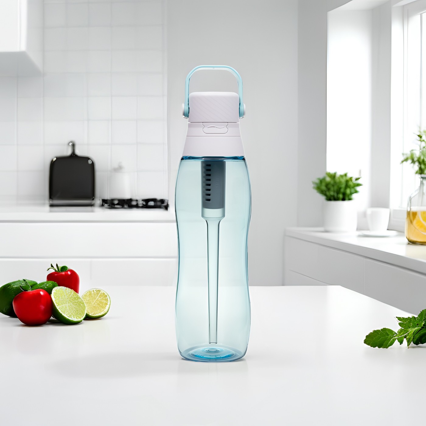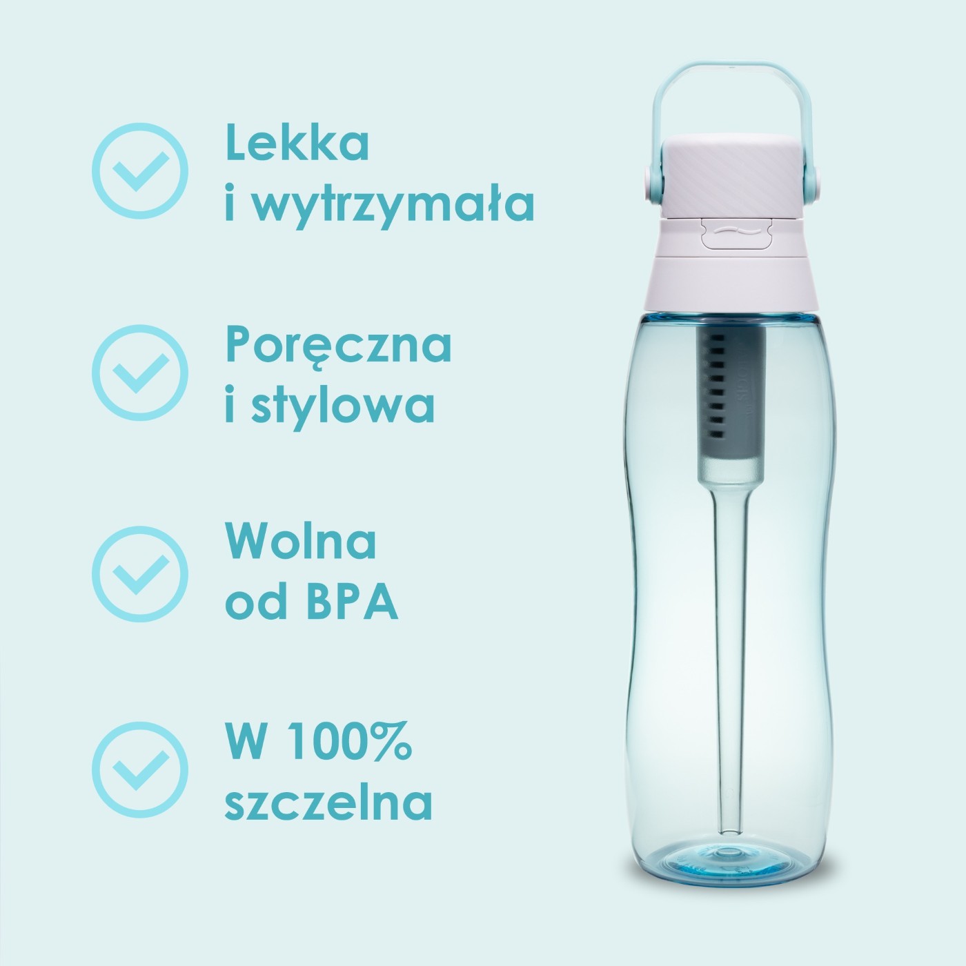 Wykonana z trwałego Tritanu (BPA Free) i wyposażona w filtr z węglem aktywnym, skutecznie poprawia smak wody, redukując chlor. Jeden filtr wystarcza nawet na 1 miesiąc użytkowania i zastępuje do 300 jednorazowych butelek plastikowych.