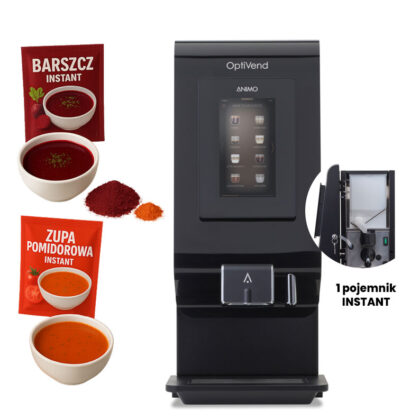 Jedno urządzenie może serwować kawę instant, gorącą czekoladę, mleko, herbatę oraz zupy instant. To idealne rozwiązanie dla biur, stołówek i punktów gastronomicznych.