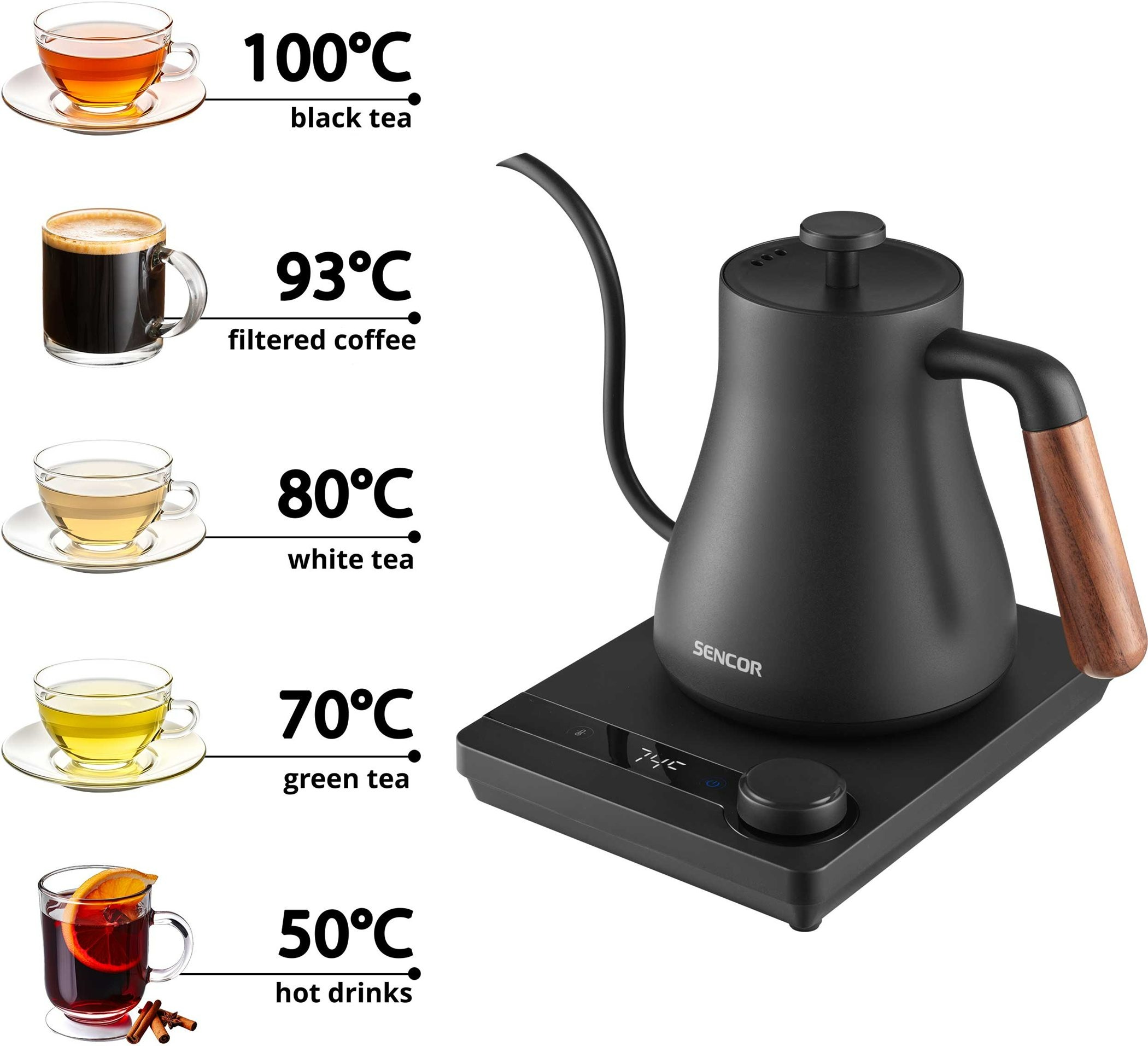 Sencor SWK 2828BK – Czajnik elektryczny Pour Over 0,6 l, regulacja temperatury
